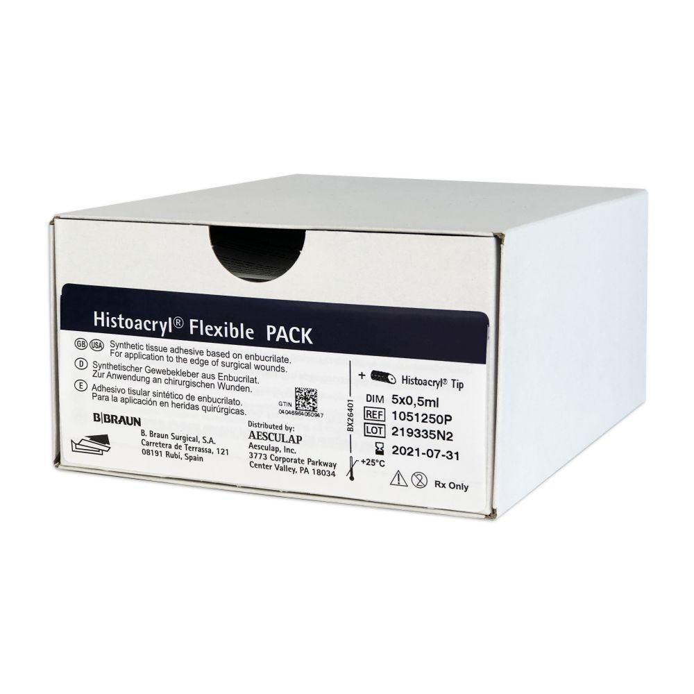Медицинский тканевой синтетический клей с аппликатором Histoacryl Flexible Pack в комплектации предназначен для соединения тканей и создания микробиологического барьера. Клей Histoacryl Flexible представляет собой стерильную жидкость, изготовленную на основе мономера n-бутил цианоакрилата и пластификатора. Для облегчения визуального контроля клей Histoacryl Flexible окрашен в синий цвет.