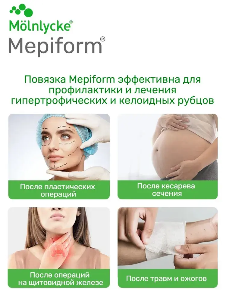 2. Если необходимо вырежьте кусочек пластыря нужного размера. Заступ на окружающую кожу со всех сторон от рубца должен быть, как минимум, 1 см. Область наложения должна быть сухой. При использовании с мазью или кремом пластырь должен перекрывать область нанесения крема.