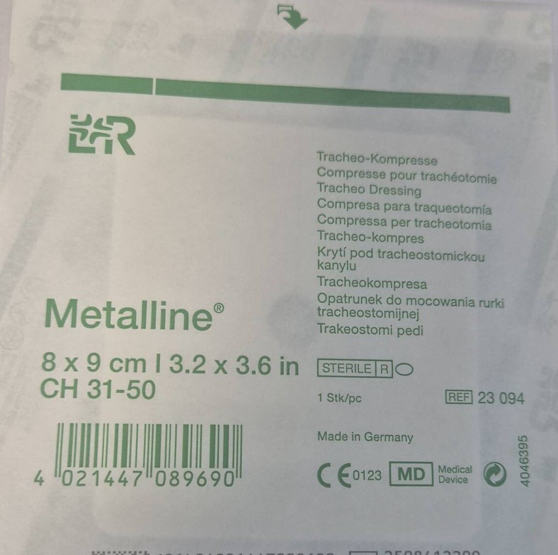 Повязка МЕТАЛЛИНЕ состоит из трех слоев: не прилипающий к ране тонкий слой из напыленного алюминия, впитывающий слой из высококачественной вискозы и наружный защитный слой. Повязка обладает высокой впитывающей способностью, смена повязки происходит безболезненно. МЕТАЛЛИНЕ защищает рану от перегрева. Предназначена для ухода за ранами в различных областях – травматологии, хирургии, дерматологии и флебологии, особенно при обширных ранах, ссадинах, ожогах. Подходит для оказания первой помощи. Также выпускается в виде стерильной повязки для дренажей и трахеостомических трубок.